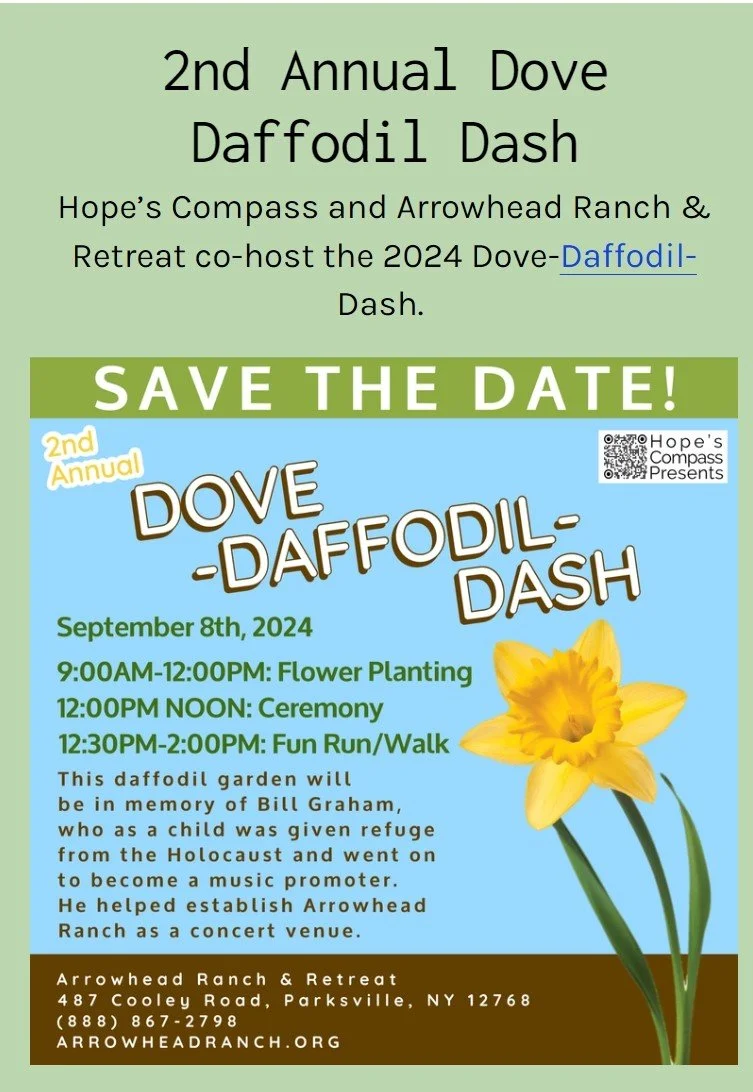 Dove-Daffodil-Dash by going 2 miles from Arrowhead Ranch and Retreat to the Dove in Parksville, NY.