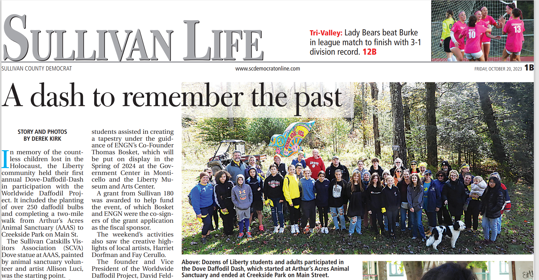 The first annual Dove-Daffodil-Dash saw over 70 people walking, running or dashing from Arthur’s Acres Animal Sanctuary in Parksville, NY to Creekside Park in Liberty, NY.
